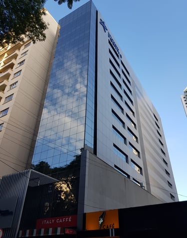 Salas de aula da faculdade Positivo praça osório tem nossos produtos da linha de forro acústico modular.
